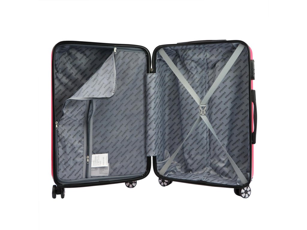 Představujeme vám cestovní kufr vyrobený z vysoce odolného ABS materiálu, který spojuje skvělou kvalitu a rozumnou cenu. Tento kufr je ideální volbou pro všechny cestovatele, kteří hledají spolehlivého společníka na svých cestách. Kufr je vybaven jednou teleskopickou rukojetí, která umožňuje snadné a pohodlné tažení, a dvěma gumovými madly pro snadnou manipulaci při nakládání a vykládání. Dvojitá otočná kolečka zajišťují hladký pohyb kufru v jakémkoli směru, takže se s ním snadno manévruje i v těsných prostorech. Bezpečnost vašich věcí je zajištěna kombinovaným zámkem, který chrání obsah kufru před neoprávněným otevřením. Uvnitř naleznete kvalitní podšívku, která dodává kufru elegantní vzhled, a dvě kapsy na zip pro uložení drobností nebo dokladů. Kufr je navržen tak, aby maximálně usnadnil organizaci vašich věcí. Jedna strana je vybavena gumovými pásy, které udržují obsah na svém místě, zatímco druhá strana se uzavírá zipem pro snadný přístup. Dále je kufr opatřen čtyřmi gumovými nožičkami, které zajišťují stabilitu při jeho odložení. Tento kufr je dokonalou kombinací praktičnosti, odolnosti a atraktivního designu, díky čemuž se stane vaším spolehlivým partnerem na každé cestě.