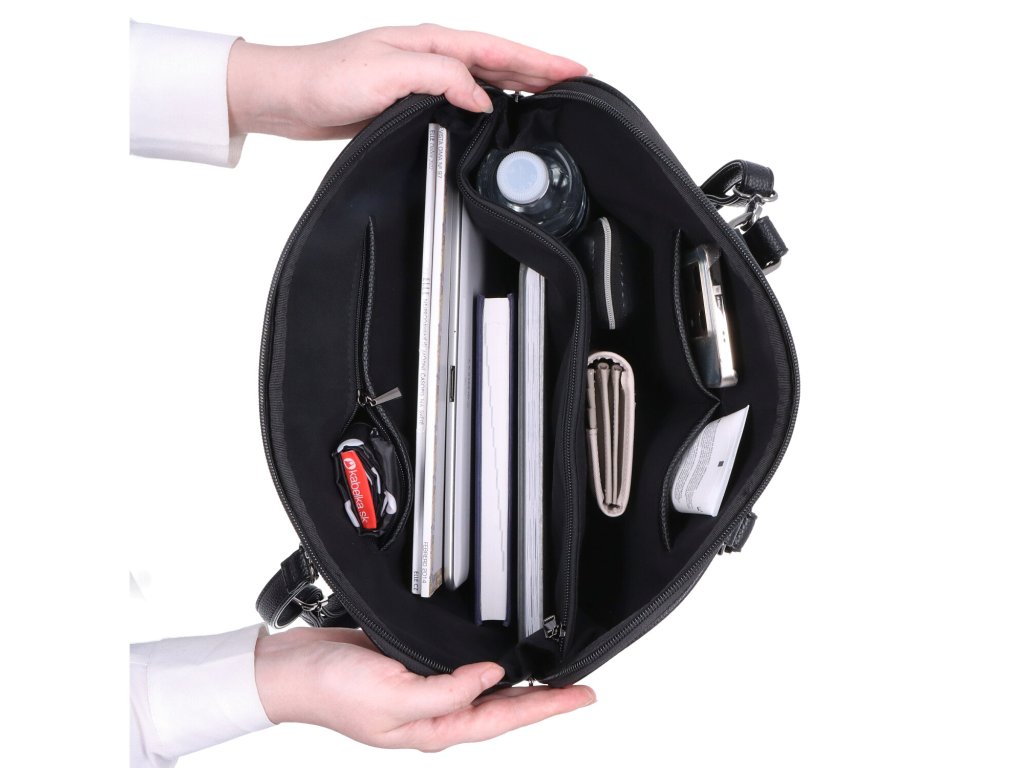 Business kabelka Carmelo je elegantní a praktický doplněk vyrobený z kvalitní eko kůže s jemnou strukturou. Nabízí dostatek prostoru pro všechny vaše dokumenty a notebook, což z ní činí ideální volbu pro pracovní i každodenní použití. Kabelka se zavírá na zip, což zajišťuje bezpečnost vašich věcí. Uvnitř najdete praktickou zipovou kapsu a dvě menší kapsy na drobnosti, které usnadní organizaci vašeho obsahu. Na zadní straně je umístěna další zipová kapsa pro snadný přístup k často používaným věcem. Ramenní popruh je nastavitelný a odnímatelný, díky čemuž si můžete kabelku přizpůsobit podle svých potřeb a preferencí.