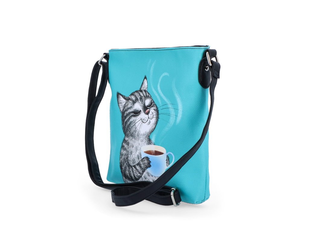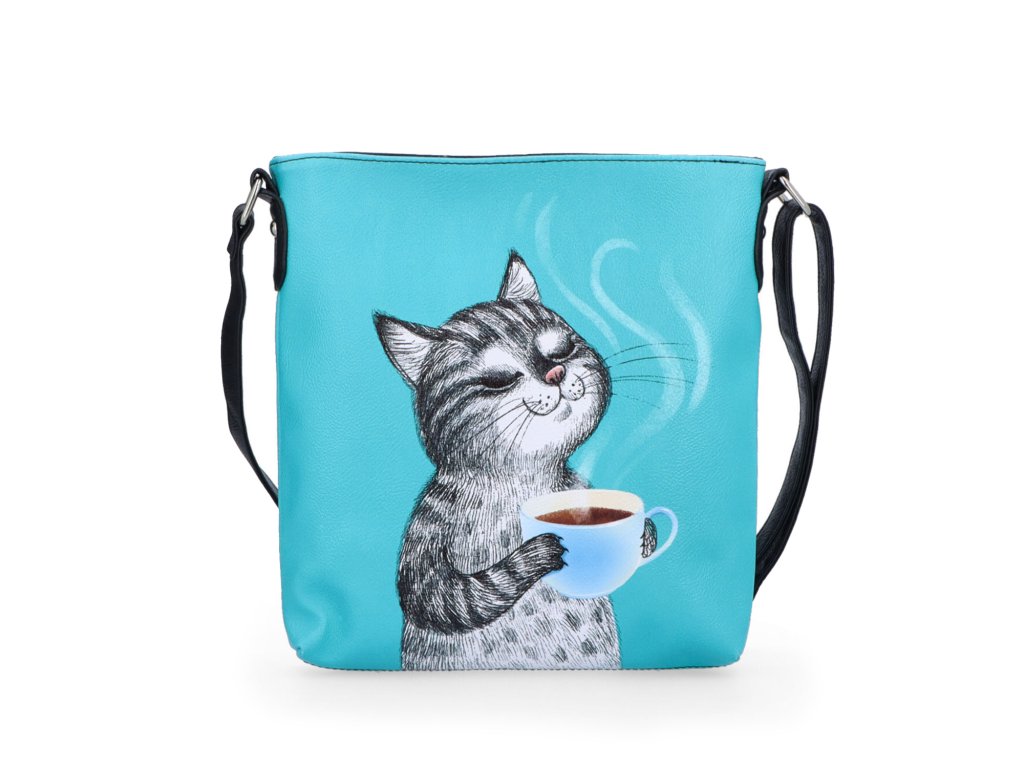 Dámská crossbody kabelka z eko kůže Indee 9300 49 C - kočka s kávou