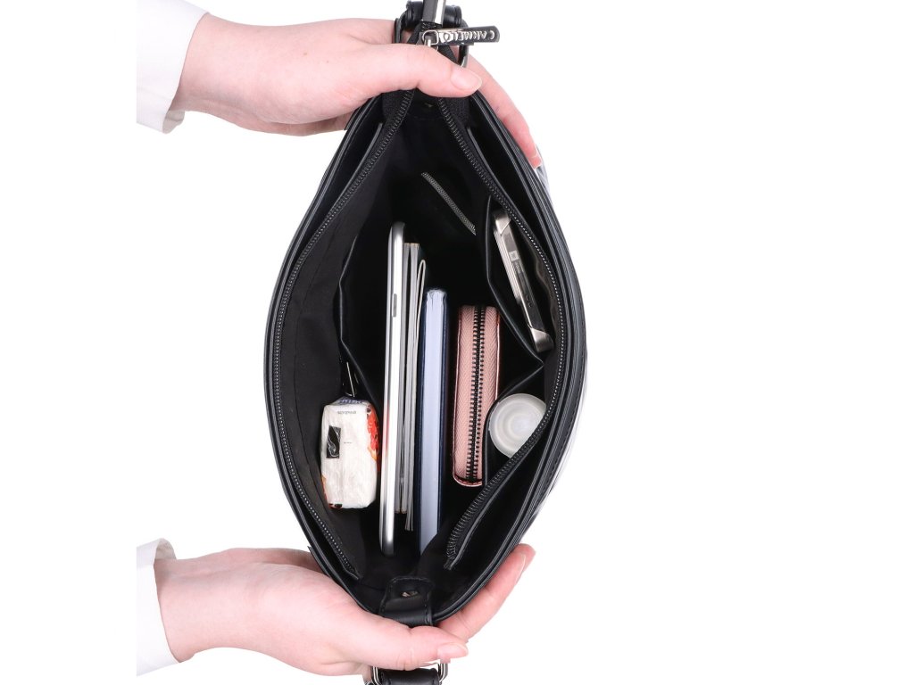 Crossbody značky Carmelo upoutá na první pohled díky svému měkce nadýchanému povrchu a jemnému prošívání, které jí dodávají moderní, sportovně-elegantní vzhled. Je vyrobena z lehkého nylonového materiálu, jenž je nejen praktický a snadno udržovatelný, ale také přispívá k její lehkosti a pohodlí při nošení. Hlavní prostor kabelky se otevírá na zip, což zajišťuje bezpečné uložení vašich věcí. Uvnitř najdete jednu menší zipovou kapsu ideální na drobnosti a dvě menší otevřené kapsy, které usnadní organizaci drobností jako jsou klíče, mobil nebo kosmetika. Na zadní straně se nachází další praktická zipová kapsa, kam lze uložit drobnosti, ke kterým chcete mít snadný přístup. Kabelka je vybavena kvalitní látkovou podšívkou, která dodává celkovému vzhledu luxusní dojem a zvyšuje odolnost. Dlouhý nastavitelný popruh umožňuje pohodlné nošení přes rameno nebo křížem přes tělo. Díky svému modernímu designu a promyšlené funkčnosti je kabelka Carmelo ideální společník pro každodenní použití i pro různé příležitosti.