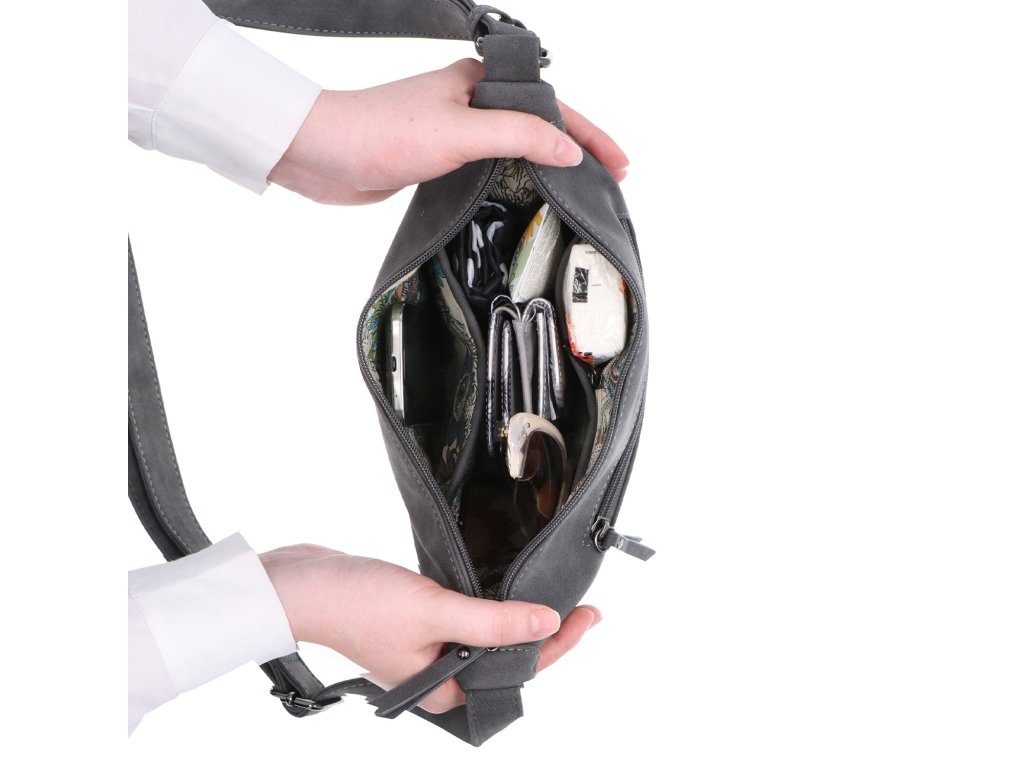 Stylová moonbag kabelka značky Tangerin se vyznačuje svým elegantním, oblým tvarem a moderním, minimalistickým designem, který okamžitě zaujme. Její jednoduchý vzhled a čisté linie činí z tohoto kousku ideální doplněk pro každodenní nošení – ať už do města, do práce nebo na volný čas. Praktické provedení zahrnuje zapínání na zip, uvnitř najdete jednu kapsu a jednu kapsu na zip, což umožňuje snadnou organizaci vašich věcí. Kvalitní látková podšívka zajišťuje dlouhou životnost a komfort při nošení. Na zadní straně je také zipová kapsa pro rychlý přístup k drobnostem. Spodní část má šířku 15 cm, horní část 32 cm, a nastavitelný popruh umožňuje přizpůsobení dle potřeby, čímž zajišťuje pohodlné nošení pro každého uživatele.