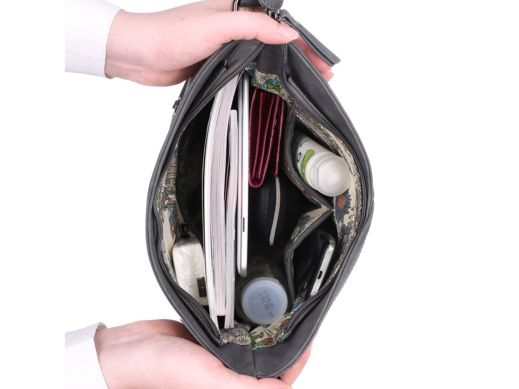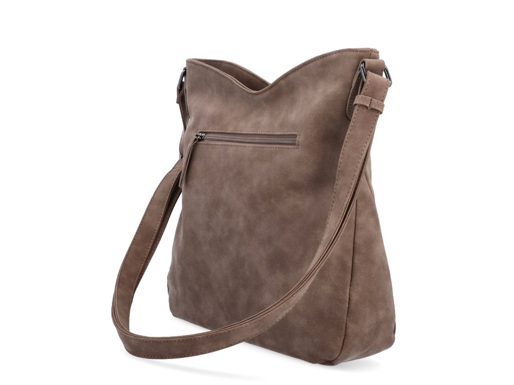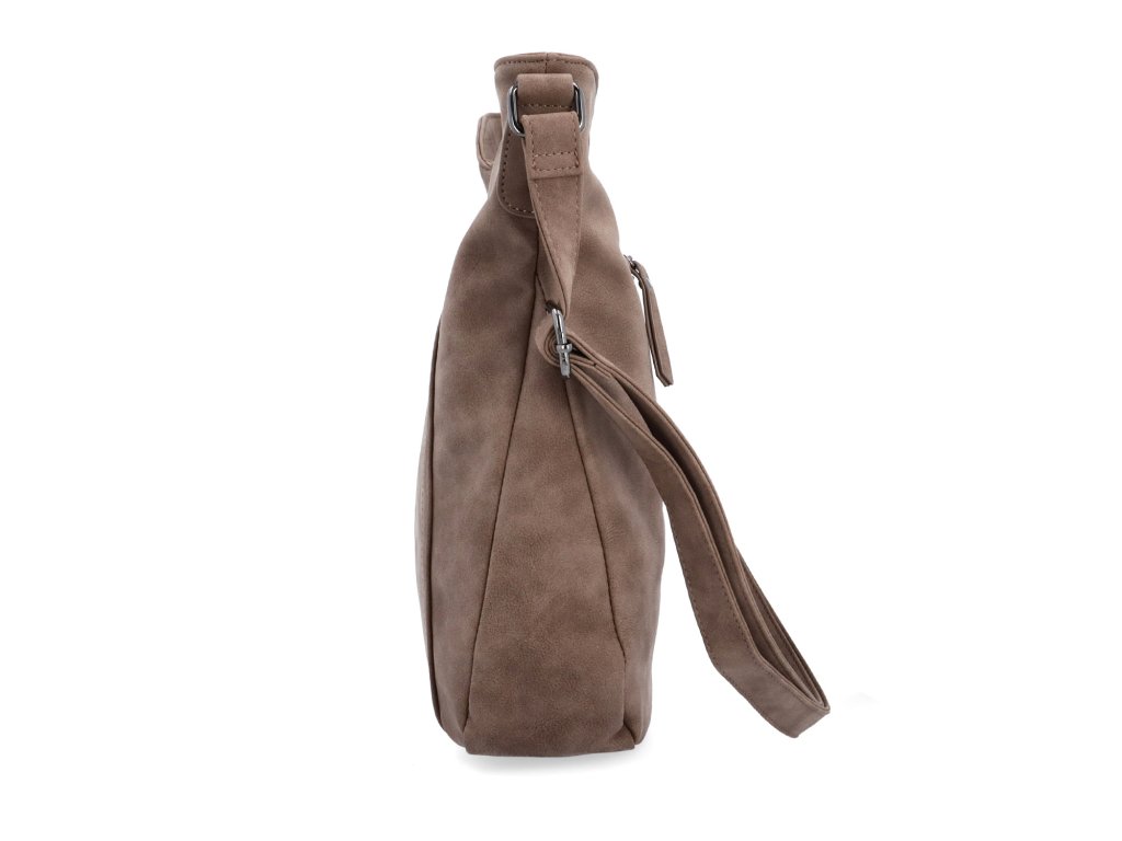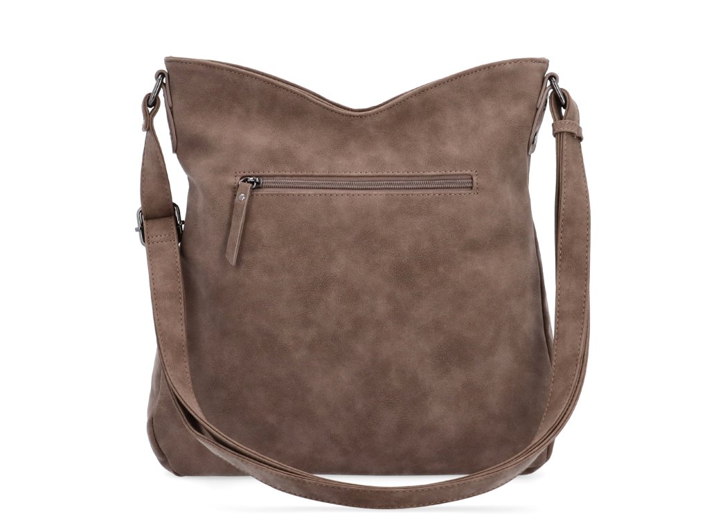 Kabelka značky Tangerin z kvalitní eko kůže se vzhledem semiše je ideálním společníkem pro každý den. Její jemný design a elegantní tvar z ní dělají stylový doplněk, který snadno sladíte s různými outfity. Kabelka je vybavena praktickým zapínáním na zip, které zabezpečí vaše věci. Uvnitř najdete dvě prostorné kapsy a jednu zipovou kapsu, ideální pro uspořádání drobností, zatímco kvalitní látková podšívka zajišťuje dlouhou životnost. Na zadní straně je další zipová kapsa pro snadný přístup k drobnostem. Nastavitelný popruh umožňuje přizpůsobit délku kabelky podle vašich potřeb, takže ji můžete nosit pohodlně přes rameno nebo křížem.