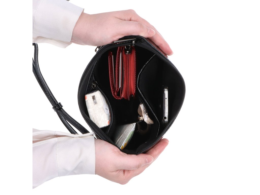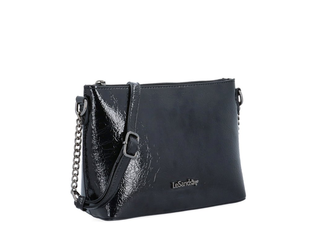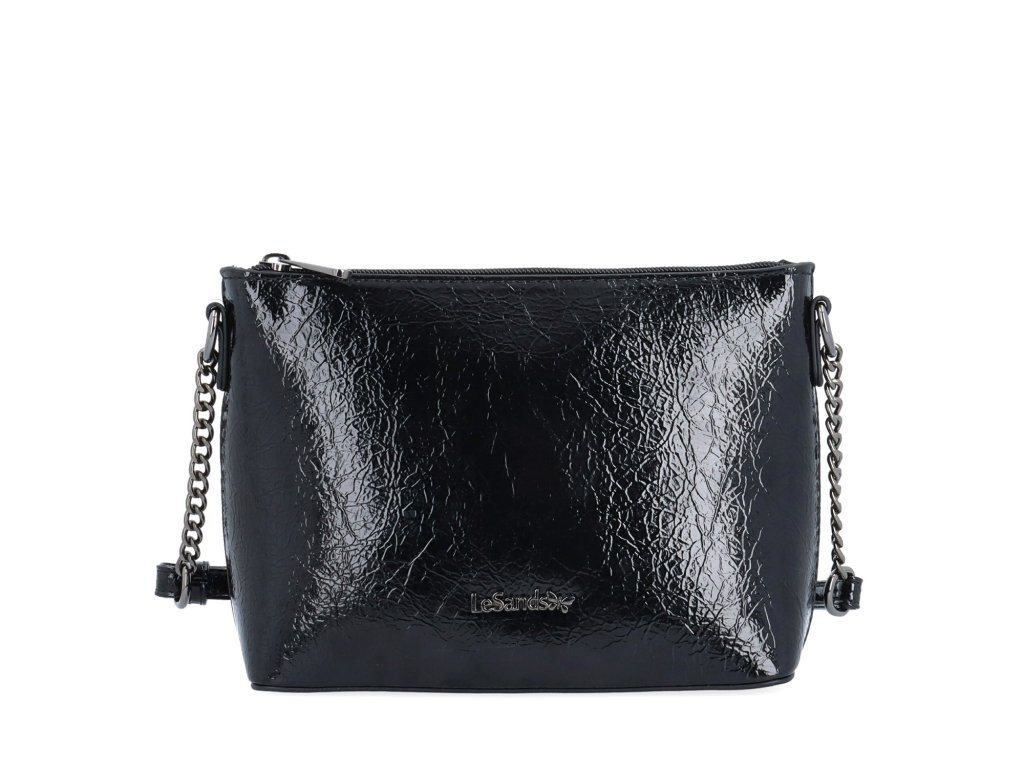 Dámská elegantní lesklá crossbody kabelka s řetízkem z eko kůže Le Sands 4374 C - černá