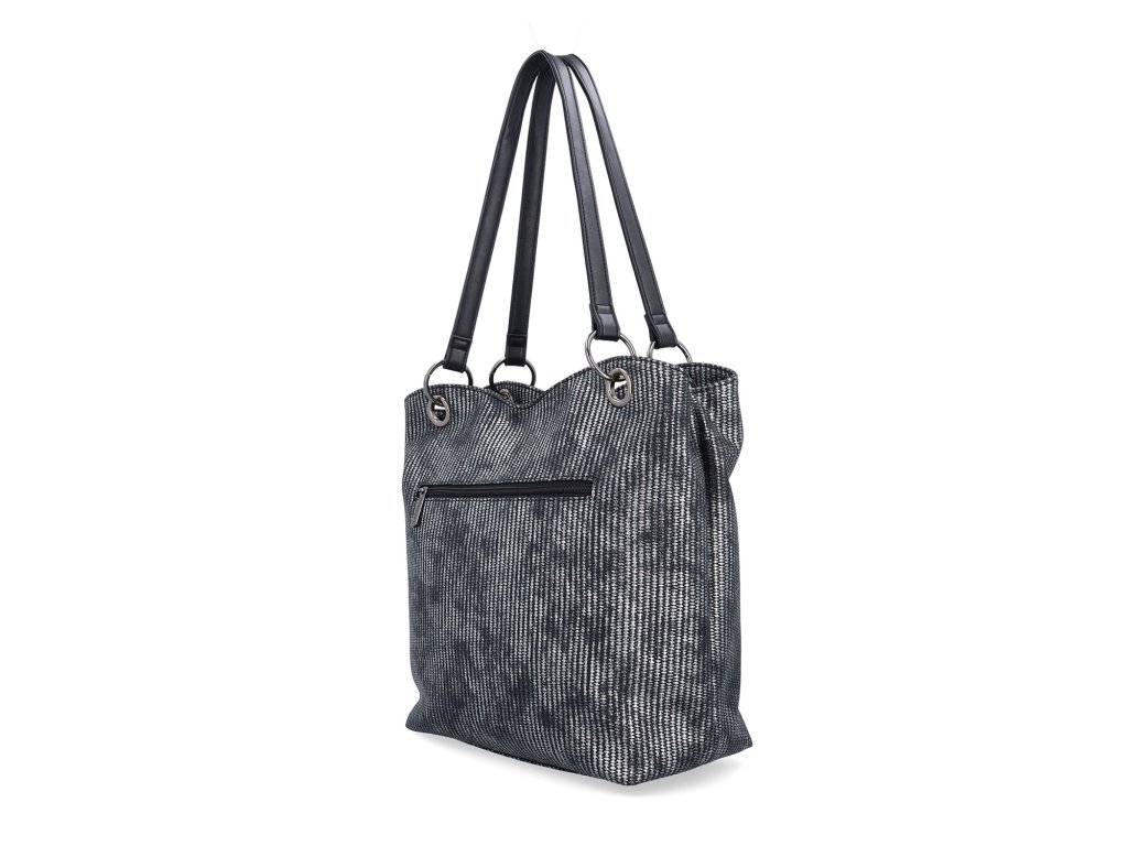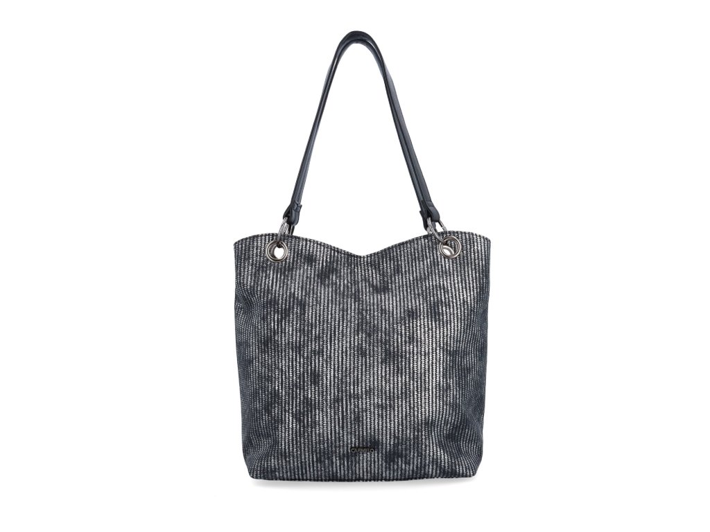 Dámská shoper bag kabelka z eko kůže Carmelo 4381 STR - černá/stříbrná
