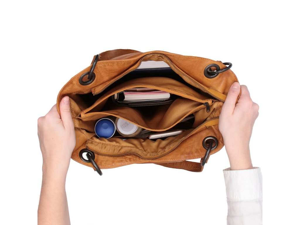 Luxusní kožená kabelka přes rameno značky Noelia Bolger představuje dokonalou kombinaci elegance a praktičnosti, ideální pro milovnice casual i vintage stylu. Je vyrobena z kvalitní přírodní kůže, která dodává kabelce nadčasový vzhled a zajišťuje její dlouhou životnost. Dostatečně prostorná kabelka je navržena tak, aby pohodlně pojmula dokumenty velikosti A4, což z ní činí skvělého společníka do kanceláře i na volný čas. V zadní části se nachází praktická zipová kapsa, která poskytuje bezpečné místo pro drobnosti, které potřebujete mít po ruce. Interiér kabelky je důmyslně rozdělen na dvě hlavní přihrádky pomocí zipové kapsy, což usnadňuje organizaci vašich věcí. Uvnitř naleznete také menší zipovou kapsu, ideální pro cennosti, a dvojkapsu na drobnosti, jako jsou klíče nebo mobilní telefon. Kabelka je navíc podšita látkou v odpovídající barvě, což dodává celkovému designu na eleganci. Na spodní straně kabelky se nacházejí špuntíky, které chrání kůži před poškozením a zároveň zajišťují stabilitu, když kabelku položíte. Tato kabelka není jen módním doplňkem, ale také praktickým a stylovým řešením pro každodenní nošení. S Noelia Bolger se budete cítit sebevědomě a elegantně, ať už vyrazíte kamkoliv.