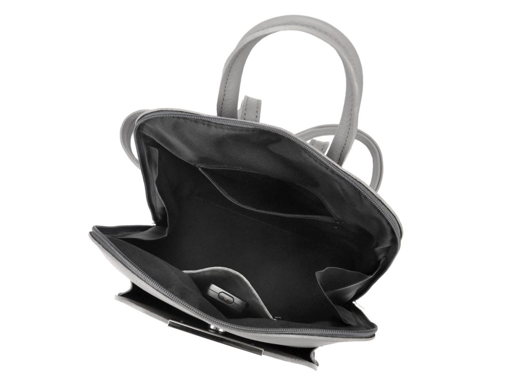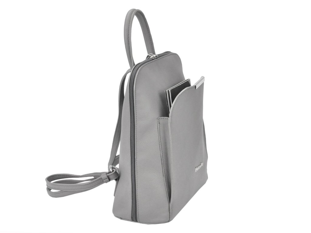 Krásný elegantní batoh Italské značky Patrizia Piu, vyrobený z kvalitní přírodní kůže. Batoh má jednu velkou kapsu, kde najdeme jednu kapsičku na zip např. na doklady a jednu kapsičku na mobil. Na přední straně batohu najdeme další kapsu na druk. Batoh zdobí stříbrná aplikace. Kvalitní a elegantní batoh se hodí ke každému outfitu.
