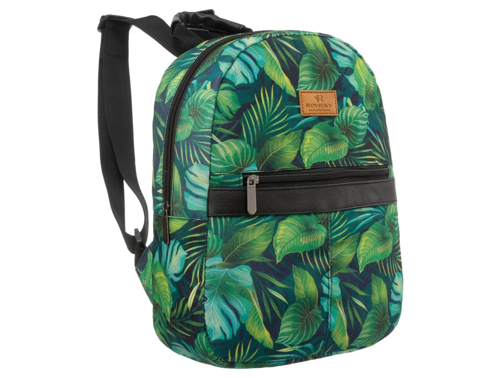 Dámský městský batoh z polyesteru Rovicky R-PL 15601 vzor 3 - černý/zelené listy