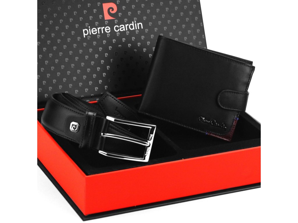 Dárková sada Pierre Cardin ZG-108-BR peněženka/opasek - černá