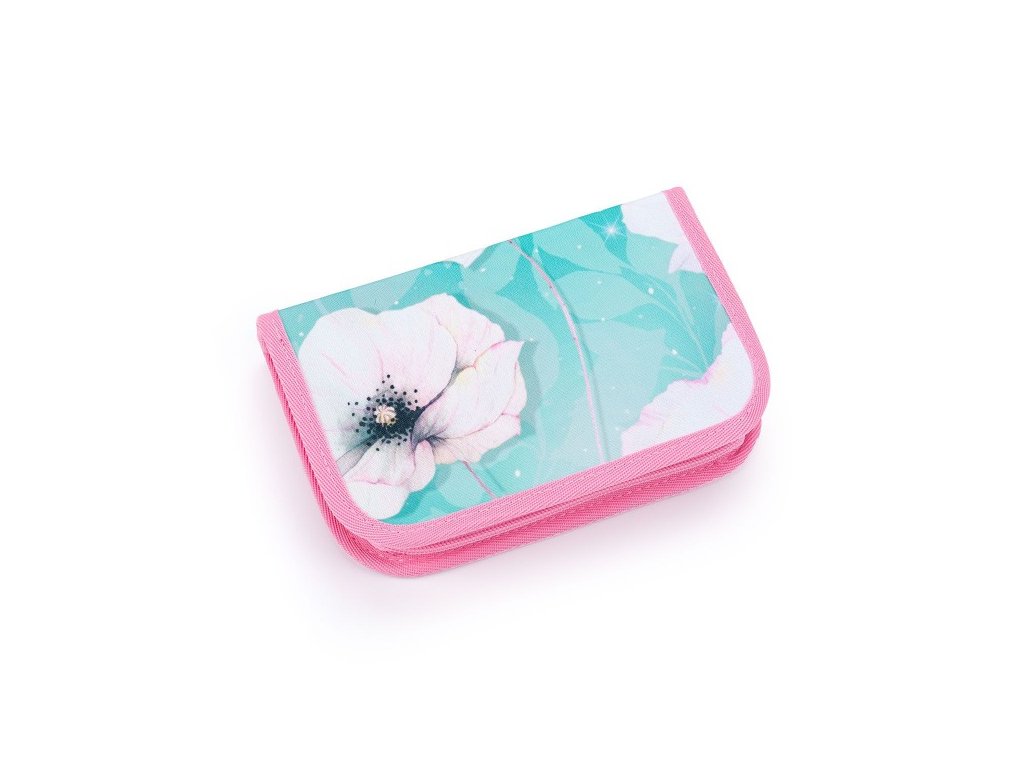 Školní dvouklopové pouzdro Topgal PENN 22053 - tyrkysové/květy