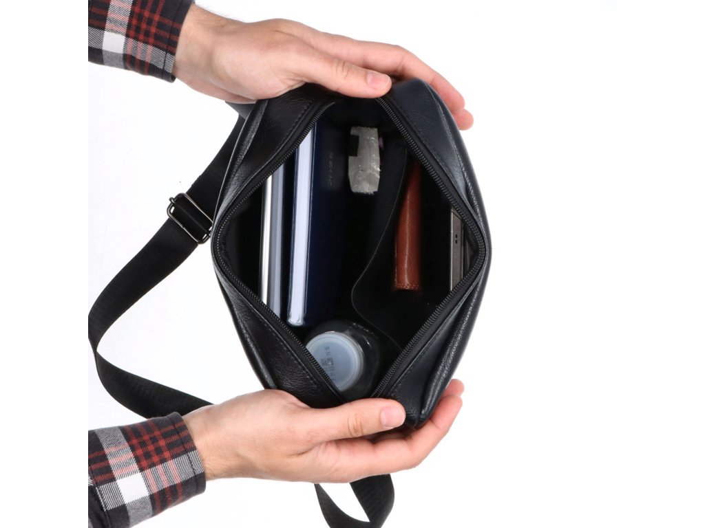Pánská crossbody taška značky Tangerin je stylový a praktický doplněk vyrobený z kvalitní eko kůže s jemnou strukturou. Taška se uzavírá bezpečně na zip, což zajišťuje ochranu vašich věcí. Uvnitř najdete praktickou zipovou kapsu, která je ideální pro uspořádání menších předmětů. Na přední i zadní straně se nachází další kapsa na zip, do které lze snadno uložit drobnosti, které potřebujete mít po ruce. Taška je vybavena pevným a nastavitelným popruhem, díky čemuž si můžete délku přizpůsobit podle svých potřeb a pohodlně ji nosit přes rameno nebo přes tělo. Stylové a funkční provedení této crossbody tašky ji činí ideální volbou pro každodenní nošení.