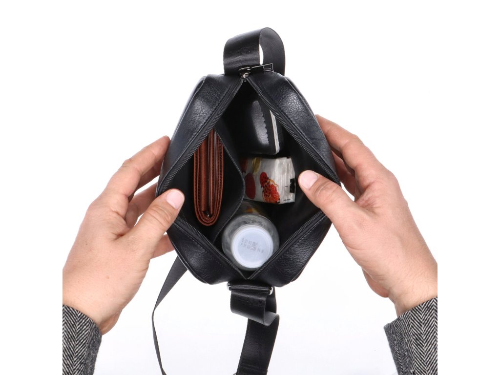 Pánská crossbody taška značky Tangerin je stylový a praktický doplněk vyrobený z kvalitní eko kůže. Taška se uzavírá bezpečně na zip, což zajišťuje ochranu vašich věcí. Uvnitř najdete praktickou zipovou kapsu, která je ideální pro uspořádání menších předmětů. Na přední straně je kapsa na druk, na zadní straně se nachází další kapsa na zip, do které lze snadno uložit drobnosti, které potřebujete mít po ruce. Taška je vybavena pevným a nastavitelným popruhem, díky čemuž si můžete délku přizpůsobit podle svých potřeb a pohodlně ji nosit přes rameno nebo přes tělo. Stylové a funkční provedení této crossbody tašky ji činí ideální volbou pro každodenní nošení.
