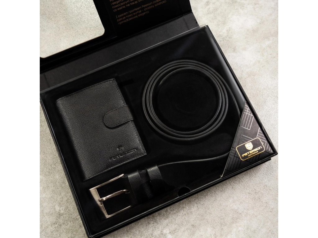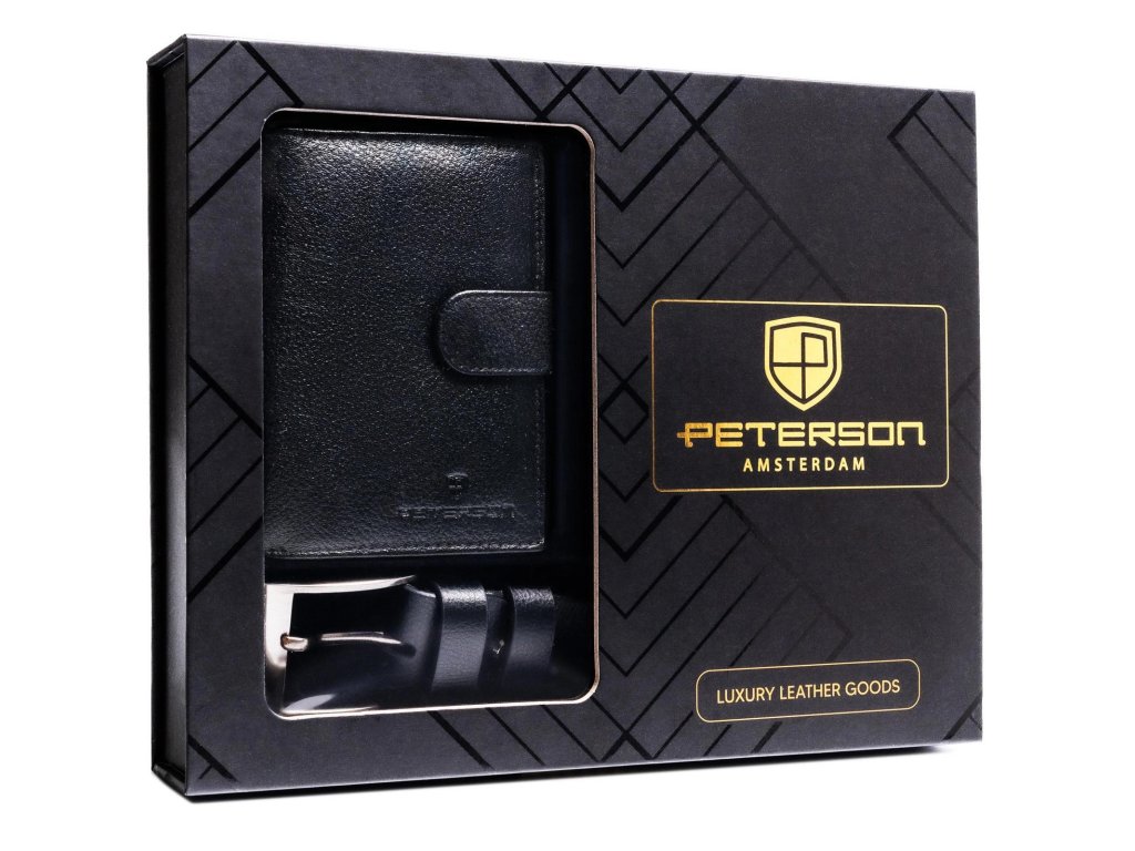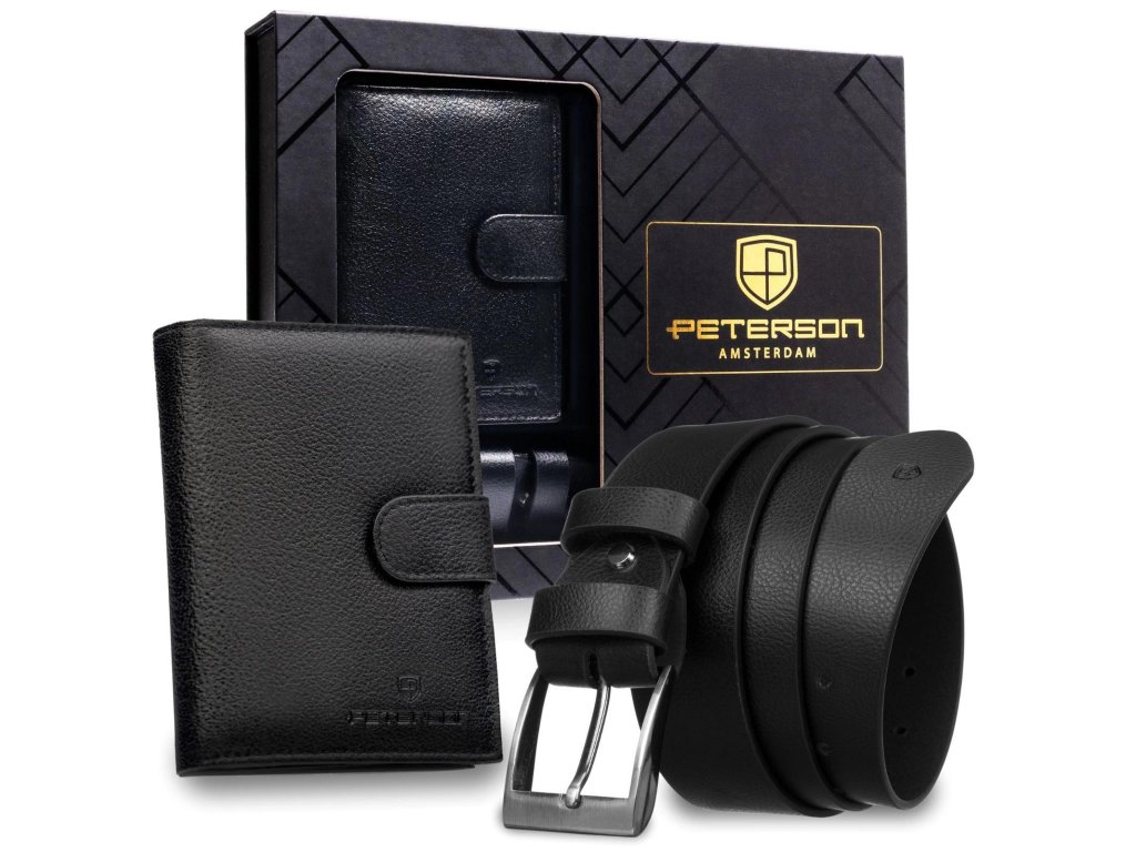 Pánská dárková sada Peterson peněženka/opasek PTN SET N4L-SPDM-BW - černá