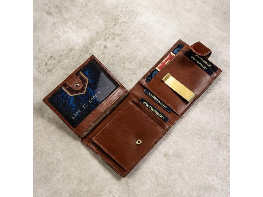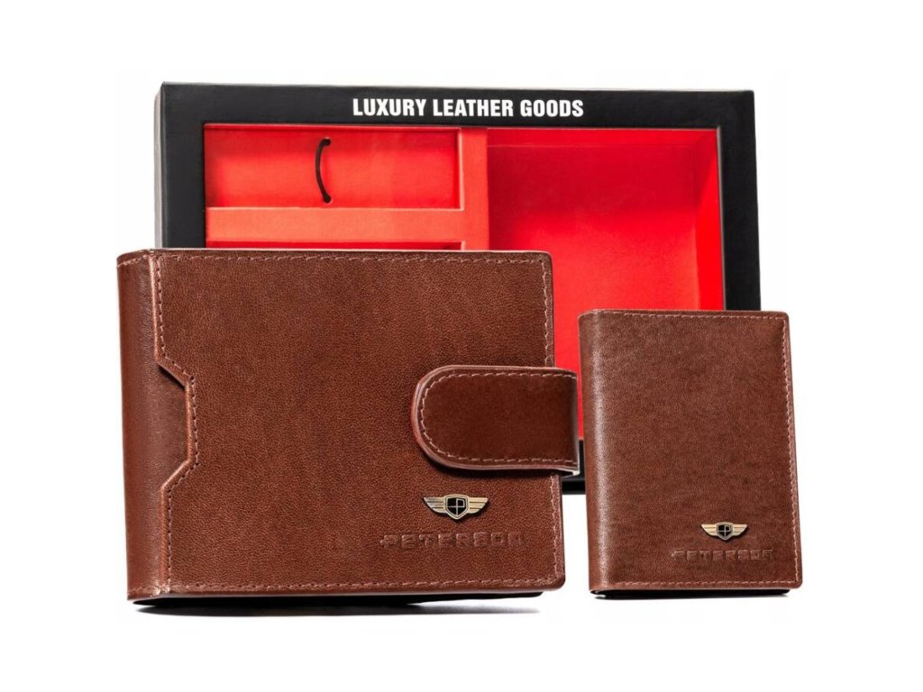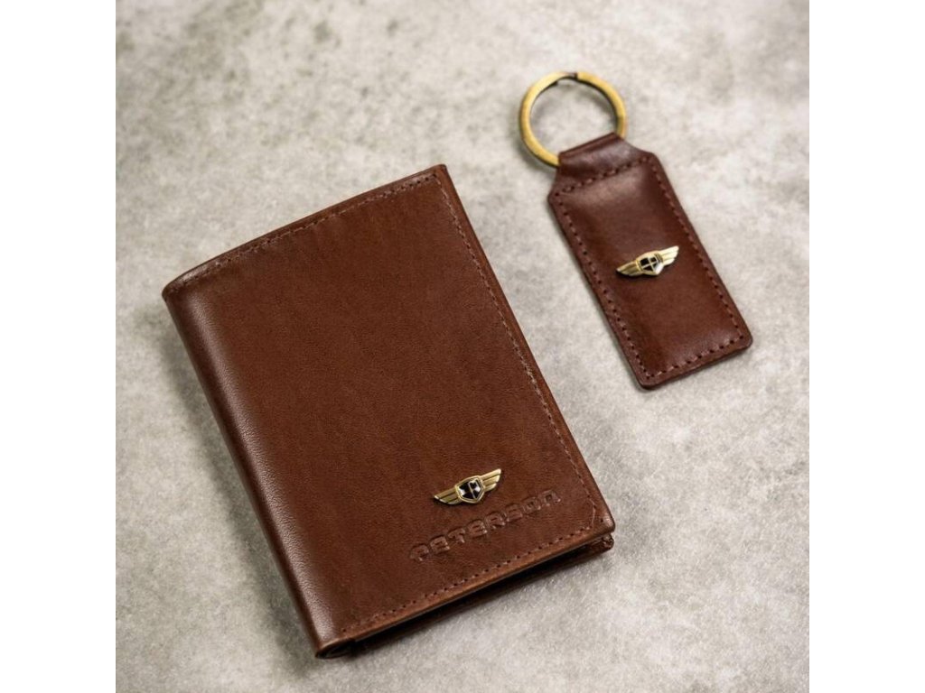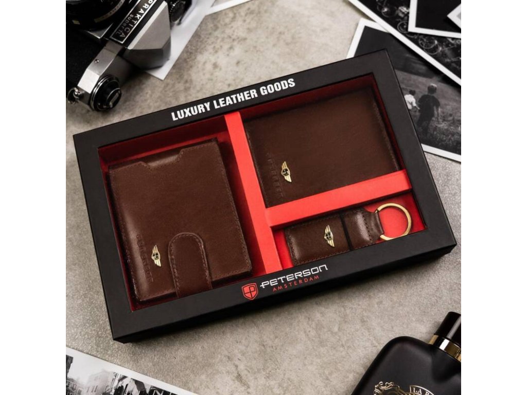 Pánská dárková sada Peterson PTN SET3-N78L-VT peněženka/pouzdro na karty/klíčenka - hnědá