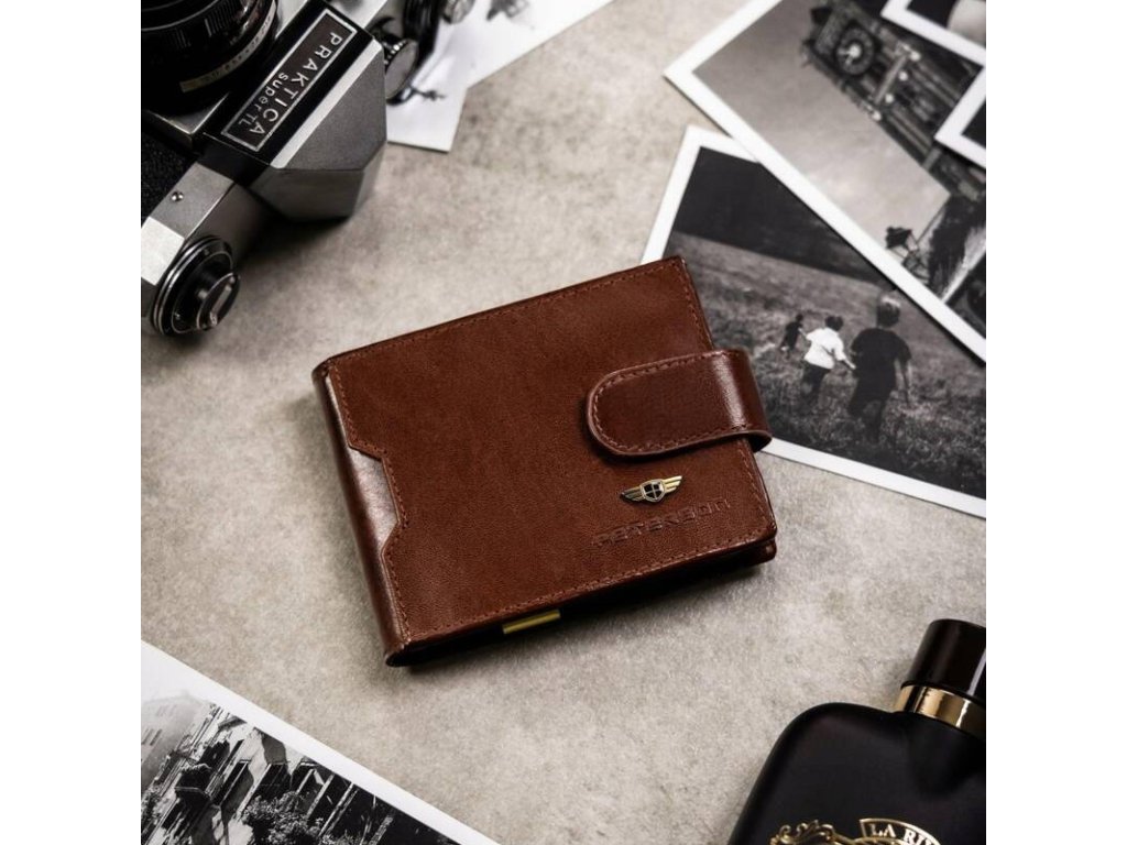 Luxusní pánská dárková kazeta je ideálním dárkem pro muže, kteří ocení kvalitní a stylové doplňky. Tato elegantní kazeta obsahuje peněženku, pouzdro na karty a klíčenku. Peněženka je vyrobena z hladké kůže, která dodává produktu nadčasový a sofistikovaný vzhled. Na přední straně peněženky je umístěno kovové logo firmy, které podtrhuje exkluzivitu tohoto kousku. Uvnitř peněženky se nachází praktická kapsa na mince a dvě kapsy na bankovky, což zajišťuje dostatek místa pro veškeré potřebné bankovky a drobné. Kromě toho je peněženka vybavena klopou s přihrádkami na karty a doklady, což usnadňuje organizaci a přístup k důležitým dokladům. Všechny tyto prvky jsou navíc chráněny technologií RFID, která zabezpečuje ochranu vašich osobních údajů před neautorizovaným skenováním. Pouzdro na karty je moderním doplňkem a lze ho použít jako mini peněženku na bankovky a karty. Celkově tato luxusní dárková kazeta představuje skvělou kombinaci elegance, funkčnosti a bezpečnosti, a je tak ideálním dárkem pro muže, který si potrpí na kvalitu a styl.