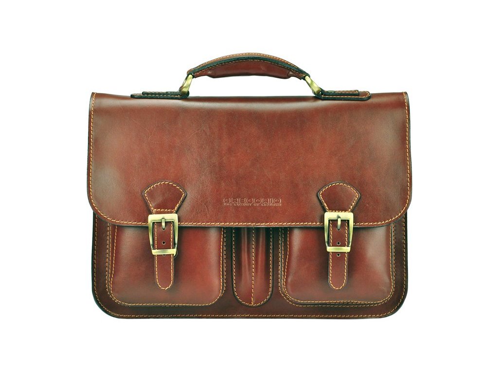 Luxusní pánská kožená aktovka značky Gregorio v hnědé barvě. Aktovka je zhotovena z velmi kvalitní přírodní kůže. Po otevření se vám nabízí dvě přihrádky na uložení drobností a různých dokumentů ve formátu A4. Dále se zde nachází dvě kapsy na přední straně. Na zadní stravě taška disponuje jednou kasou na zips. Pro nošení v ruce je opatřena pevným uchem. Také ji lze doplnit odnímatelným popruhem pro nošení přes rameno. Tuto moderní aktovku si velice oblíbíte pro její všestranné využití.