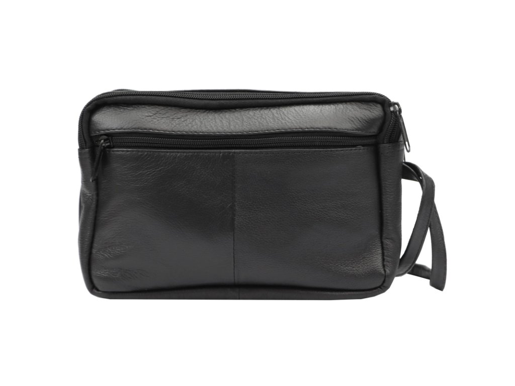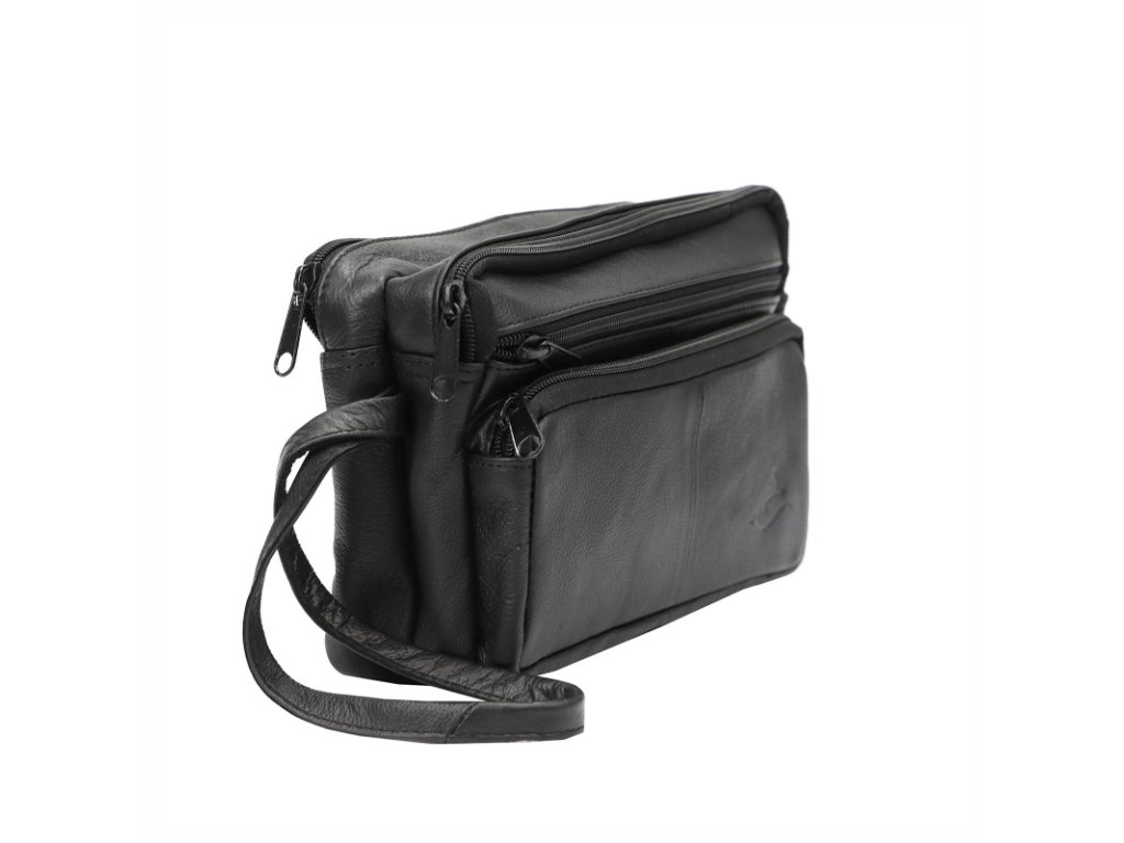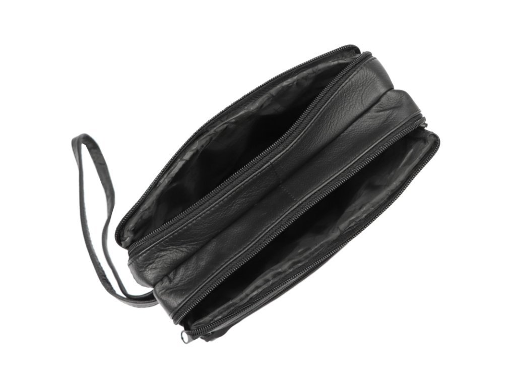 Pánská kožená etue vyrobená z měkké přírodní kůže je elegantní a praktický doplněk, který se skvěle hodí pro každodenní použití. Její hlavní prostor je rozdělen do dvou prostorných komor, které jsou pečlivě uzavřeny pevnými zipy, což zabezpečuje bezpečné uschování věcí. Na přední a zadní straně najdete praktické kapsy, díky nimž snadno zorganizujete drobnosti, jako jsou klíče, mobil nebo další nezbytnosti. Etue je variabilní – můžete ji nosit v ruce nebo s sebou mít pohodlný řemínek na zápěstí, který zajišťuje komfort při přenášení. Měkká kůže dodává tašce luxusní vzhled a příjemný pocit na dotek, zatímco její promyšlené uspořádání činí z této etue ideálního společníka do práce i na volný čas.