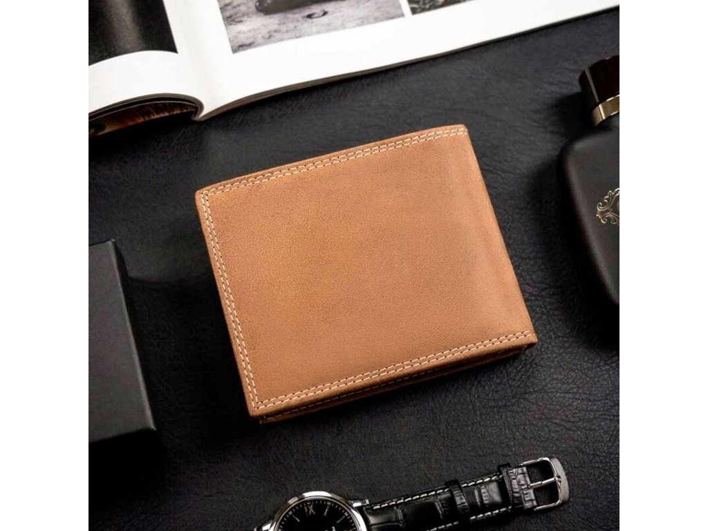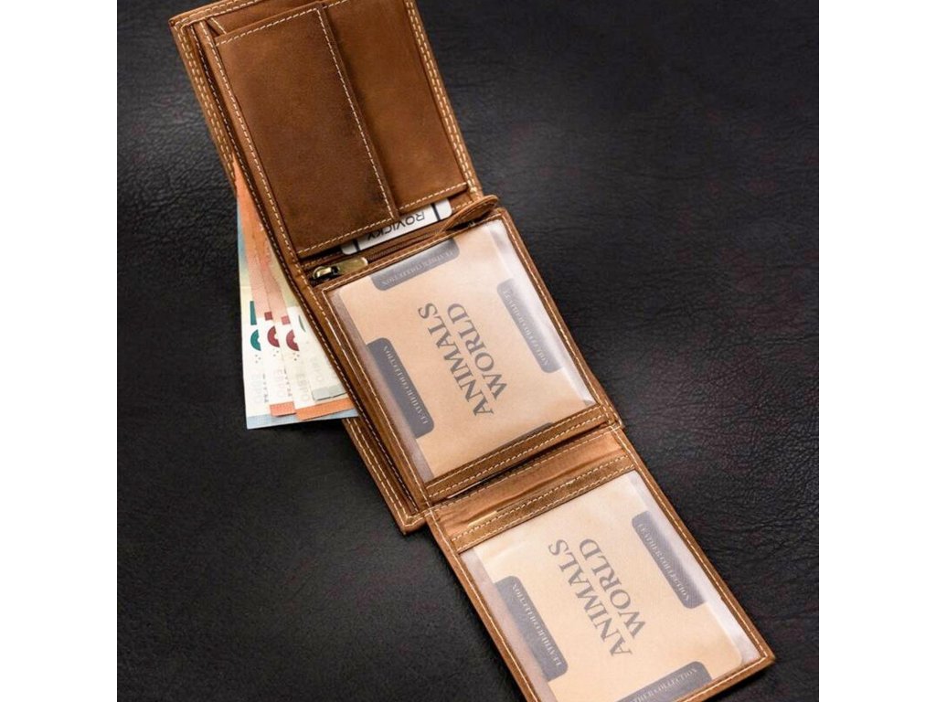 Pánská kožená peněženka Wild ANIMALS N992-CHM SHE - světle hnědá