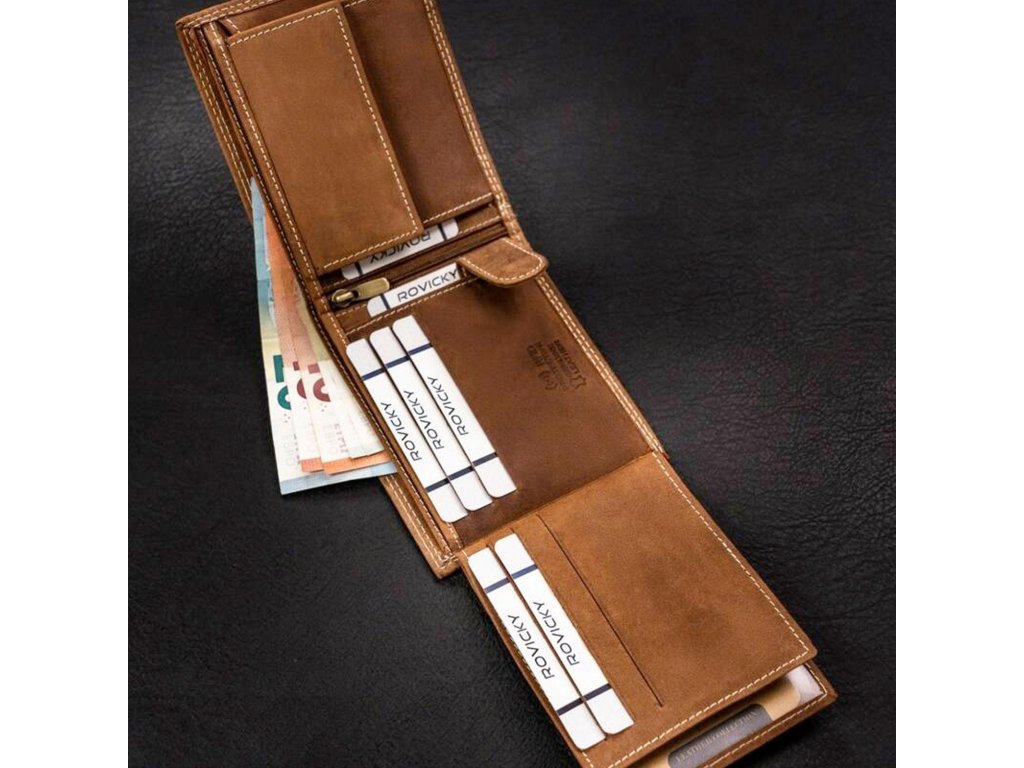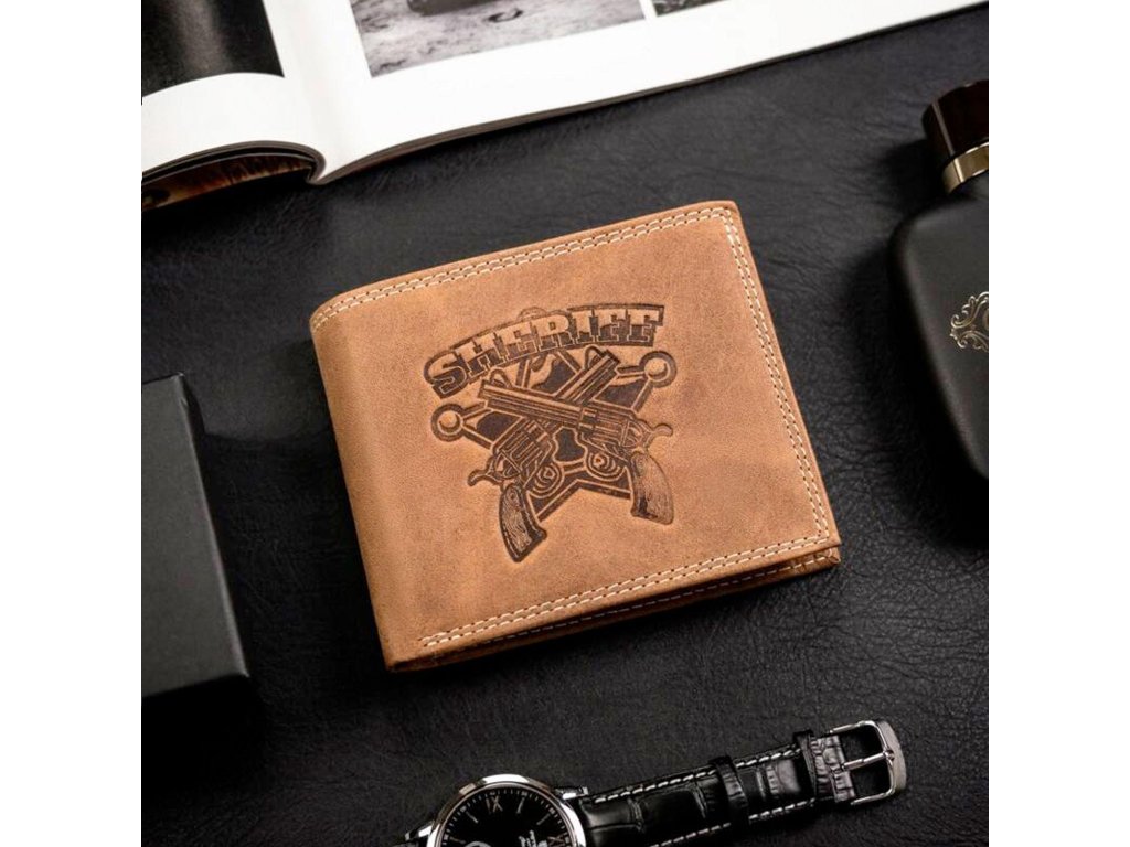 Kvalitní kožená peněženka pro pány je ideální volbou pro ty, kteří hledají stylový a funkční doplněk. Uvnitř peněženky naleznete praktickou kapsu na mince, přihrádky na bankovky a dostatek přihrádek na karty a doklady, které jsou umístěny na klopách a bezpečně zajištěny páskem s drukem. Kromě toho je k dispozici jedna kapsička na zip, ideální pro uschování drobných předmětů. Peněženka je precizně zpracována s dvojitým prošitím kontrastní nití, což dodává na její odolnosti a stylu. Na čelní straně je vyražený výrazný motiv, které podtrhuje její prémiový vzhled. Důležitou funkcí této peněženky je také ochrana RFID, která chrání vaše osobní údaje před neoprávněným skenováním karet. Tato kožená peněženka je tak nejen designovým, ale i bezpečným doplňkem pro každého muže, který ocení kvalitu a praktičnost.