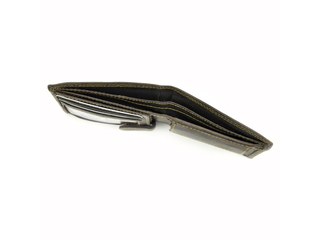 Pánská klasická kožená peněženka je elegantní a funkční doplněk, který spojuje styl a praktičnost. Vyrobena z kvalitní nubukové kůže, která je matná, příjemná na dotek a časem získá unikátní patinu. Nabízí dostatečný počet přihrádek na kreditní karty a doklady, což umožňuje snadnou organizaci vašich nejdůležitějších věcí. Peněženka disponuje také přihrádkami na bankovky. Kapsa na mince, jejíž zapínání je řešeno pevným drukem, poskytuje bezpečné místo pro drobné mince. Celý design peněženky je doplněn dvojitým kontrastním prošíváním, které jí dodává na atraktivitě a dává vyniknout jejímu kvalitnímu zpracování. Tato kombinace estetiky a funkce činí z peněženky ideální volbu pro moderního muže, který ocení jak praktické vlastnosti, tak stylový vzhled.