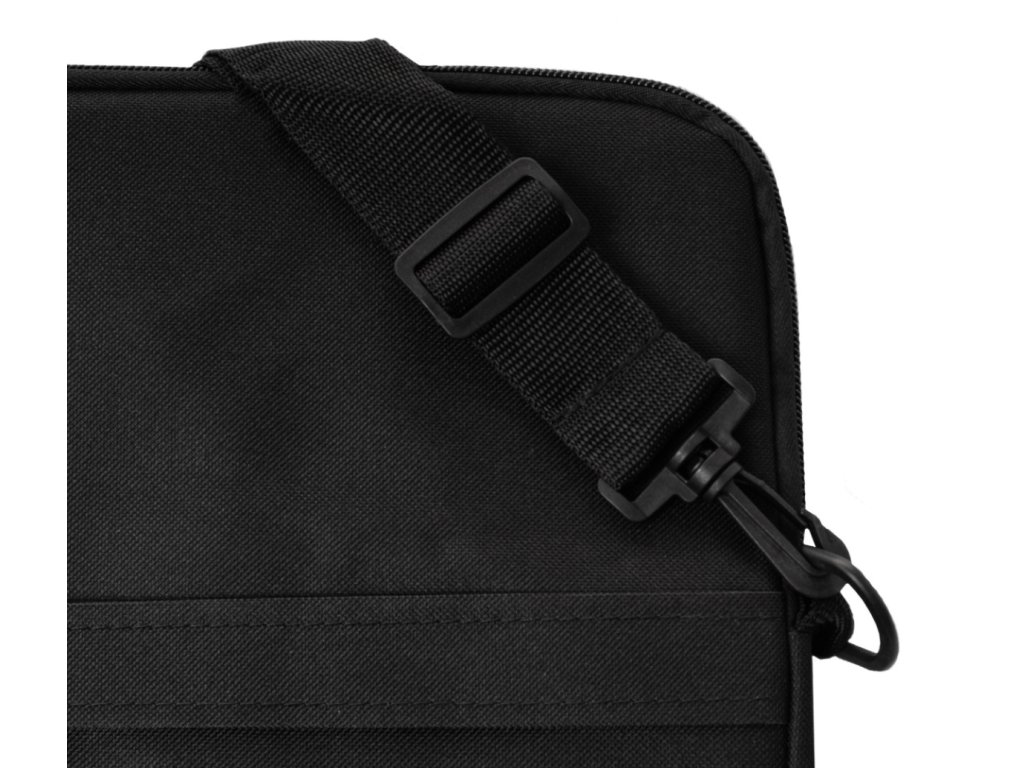 Tato taška na notebook je dokonalým spojením precizního zpracování a pečlivé pozornosti k detailům, díky čemuž splní očekávání i těch nejnáročnějších uživatelů technologií. Nabízí komplexní ochranu vašeho zařízení a pohodlné používání, takže si můžete naplno užívat svobodu při práci či studiu s vaším oblíbeným zařízením vždy po ruce. Taška je vybavena praktickým popruhem všitým na zadní straně, který umožňuje její připevnění k kufru, což činí cestování ještě pohodlnějším. Hlavní přihrádka je navržena tak, aby bezpečně pojala váš notebook, zatímco menší přední kapsa je ideální pro uložení dalších nezbytností. S 4 cm širokým, nastavitelným ramenním popruhem a pevnými rukojeťmi poskytuje taška vysokou odolnost a komfort při nošení. Rychloupínací přezka na ramenním popruhu umožňuje snadné odepnutí popruhu, když jej nepotřebujete, čímž zvyšuje praktičnost a komfort při používání.
