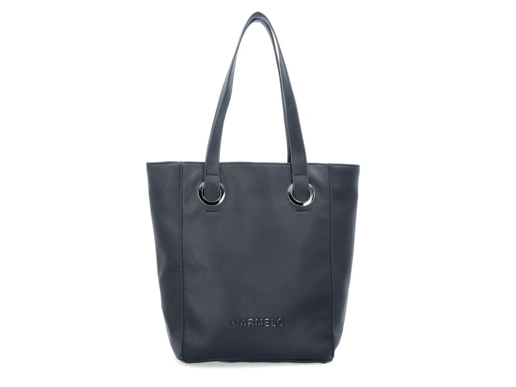 Shopper kabelka značky Carmelo je stylový a praktický doplněk. Je zdobena výrazným matným logem, které dodává celkovému vzhledu elegantní nádech, a její design je zvýrazněn originálně řešenými ušima, které působí moderně a originálně. Hlavní prostor kabelky se otevírá na pevný zip, což zajišťuje bezpečné uložení věcí. Uvnitř najdete jednu menší zipovou kapsu na cennosti nebo drobnosti a dvojkapsu určenou například na telefon či klíče, což usnadňuje organizaci. Na zadní straně je praktická zipová kapsa, ideální na rychlý přístup k důležitým věcem. Kabelka je vybavena kvalitní látkovou podšívkou, která zvyšuje její odolnost a dodává celému výrobku prémiový dojem.