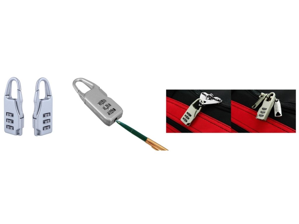 Malý, elegantní kombinovaný visací zámek, který je ideální pro zabezpečení jakéhokoli kufru, zavazadla nebo cestovní tašky. Většina cestovních zavazadel má na zipech charakteristické zářezy, které umožňují instalaci tohoto typu zámku.